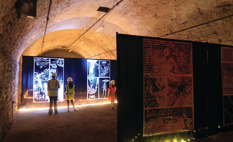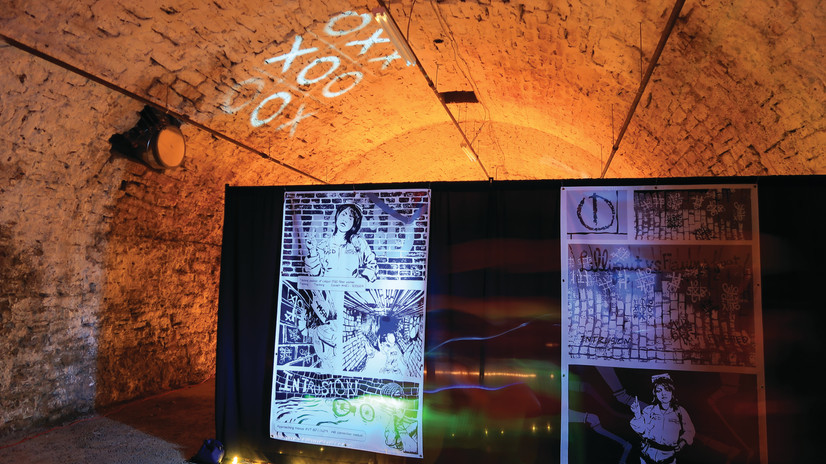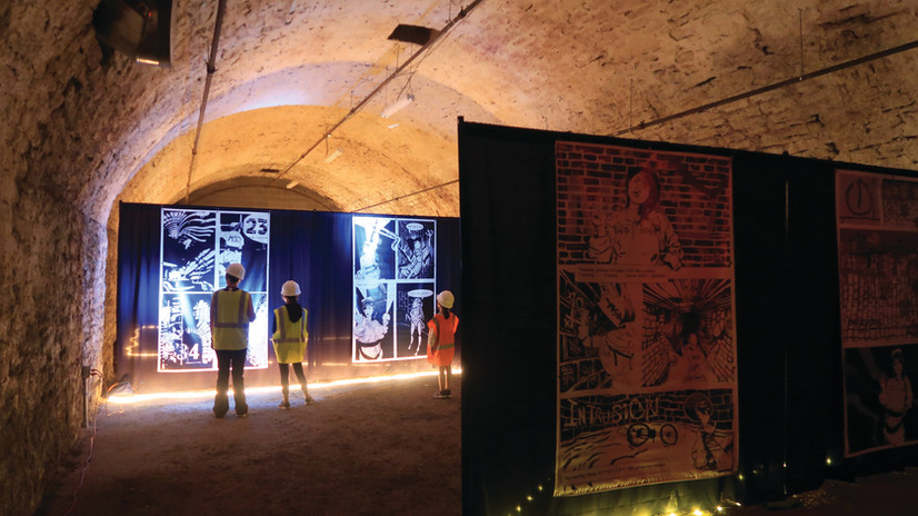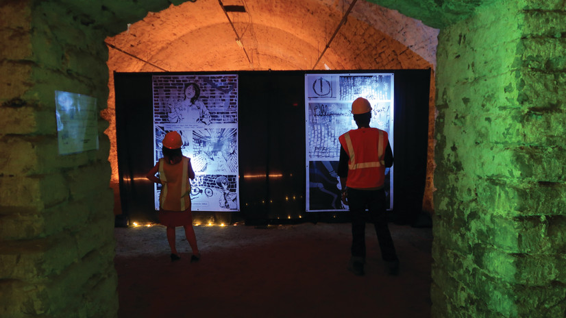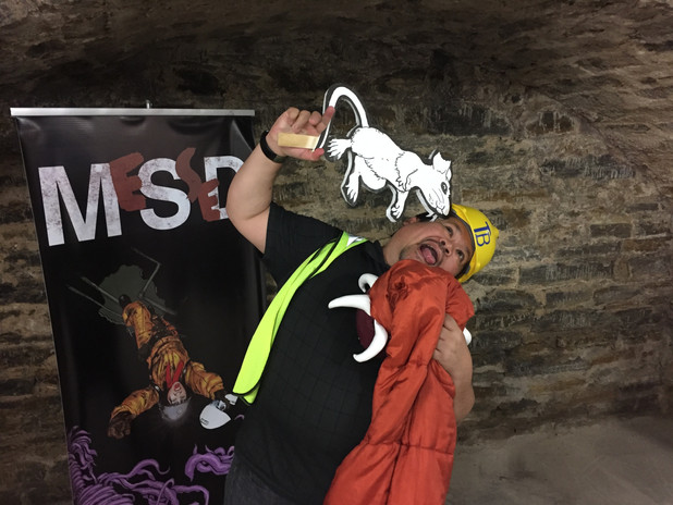The MeSseD Tunnel Tour is an immersive comic book experience installed in the subterranean basement of Union Hall in May and June of 2018. The exhibit, based on the Cincinnati-born comic MeSseD, artfully meshes sewer management and science fiction, turning the solitary experience of reading a comic book into a social “moment” in which people will experience the comic together in a real tunnel.
